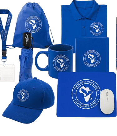 Get your company’s logo, website, domain, business cards, and custom-branded merchandise.